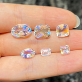 Rainbow moonstone is actually a type of labradorite, which is also part of the feldspar family. It has the same gentle glow but also shows bright flashes of blue, pink, gold, and even rainbow colors. These colors appear because light reflects off thin layers inside the stone, creating a beautiful sparkle like sunlight shining through mist.