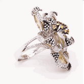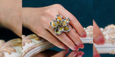 The use of yellow and champagne diamonds brings a vibrant touch to the design. These colors are carefully selected to harmonize with the overall aesthetic of the ring, adding a modern twist to a classic design.