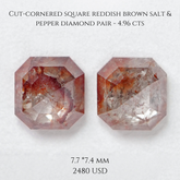 SKU 11035-1 :Cut-cornered square reddish brown salt & pepper diamond pair - 4.96 cts