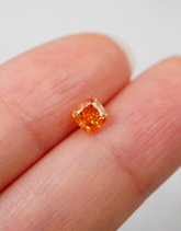 Orange diamonds come in a range of shades, from faint to vivid, often described in terms of fruit, such as pumpkin or carrot. The Gemological Institute of America (GIA) grades these diamonds using terms such as "Fancy Light," "Fancy Vivid," and "Fancy Deep" to indicate the intensity of the color. Many orange diamonds exhibit secondary hues of brown, yellow, or pink, of different proportions, making each stone an individual masterpiece. This 0.54-carat diamond featured today exhibits a secondary yellow hue and is graded fancy vivid yellowish orange according to GIA. This makes it just one of a kind in the entire universe!