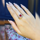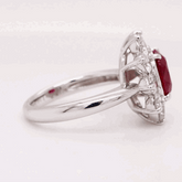 In the world of fine jewelry, few gemstones rival the mystique and allure of a pigeon-blood Burmese ruby. Coveted by royalty and collectors alike, this deep, vivid red ruby is regarded as the pinnacle of luxury. Today, we are excited to present a stunning creation that epitomizes elegance and sophistication: a cocktail ring featuring a 2.06 ct pigeon-blood Burmese ruby, certified by GIA, and encircled by 1.61 cts of brilliant round diamonds.