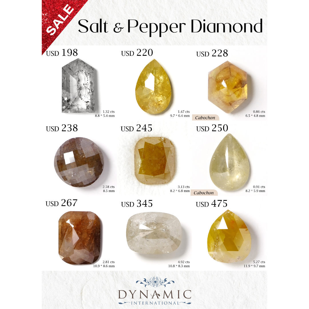 Our Salt & Pepper Diamond Collection is here for a limited time only, 27 exclusive pieces on sale! Each diamond boasts its own signature sparkle. smoky specks, twinkling patterns, and natural constellations make no two alike. You won’t find another identical piece , they are truly one of a kind.