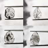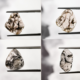 The lines and shapes inside these slices are not actual artwork , of course. They’re made up of natural inclusions tiny minerals, cracks, or growth lines that formed as the diamond grew deep underground. These inclusions are often considered flaws in regular diamonds, but in slice diamonds, they become the main attraction. Some slices have patterns that look like trees, smoke, ink drops, or lightning bolts. It’s like nature left a sketchbook inside each one. There’s a difference between regular slice diamonds and the kind we’re showing here. A plain slice might be mostly clear with small inclusions, but these slices are full of bold and contrast. They’re not just slices, they’re artworks.