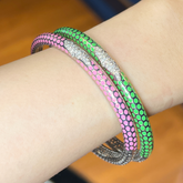Introducing our Bangle Enamel collection, five stunning bangles that effortlessly combine vibrant enamel with the brilliance of natural white diamonds. Available in black, white, pink, green, and blue. These bangles are perfect for any occasion. They’ll add that final touch of elegance and personality to your look.