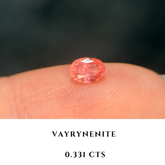 Discovered in Finland back in the 1950s, Vayrynenite is one of those gems that instantly makes collectors lean closer. Its vivid orange glow comes from manganese locked inside its phosphate structure, and today, the only significant sources are in Pakistan. Because facetable crystals are almost never found, this gem remains a collector’s prize. With so few ever entering the market, small sizes like this 0.331 carat beauty are already considered investment worthy.