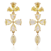 Handcrafted with 16 mixed-shape rose cut fancy yellow diamonds totaling 4.14 cts, set in rich 18K yellow gold, these earrings blend old-world charm with modern grace. The soft shimmer of rose cut diamonds adds a delicate, romantic sparkle that’s both subtle and captivating, perfect for the woman who knows her own worth.