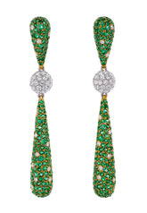 Emerald EarringsVendor: roundVibrant and full of life, these handcrafted 18K white & yellow gold earrings are a celebration of color and sparkle. Featuring 142 round-cut green emeralds totaling 4.13 carats, each stone bursts with lush, natural beauty. Accentuated by 88 round brilliant-cut white diamonds (1.65 carats...