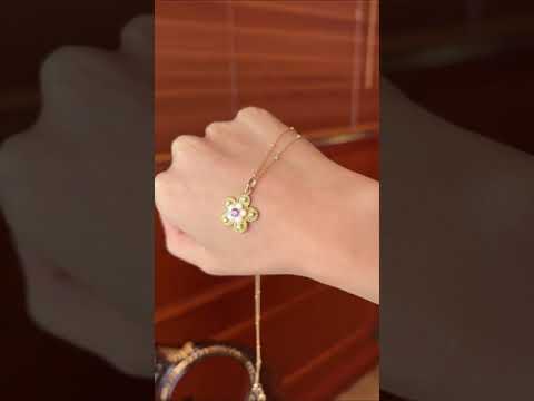 Pink Sapphire Yellow Gold NecklaceVendor: flowerExpertly handcrafted in 18k yellow gold, this necklace boasts a stunning flower-shaped pendant featuring a shimmering pink sapphire in the center and five sparkling white diamonds on its petals. Elevate any outfit with the timeless elegance of this Pink Sapphire Yellow Gold Necklace. Stone...