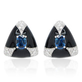 Blue Sapphire & Black Enamel EarringsVendor: TriangleBold and glamorous, these earrings feature a striking combination of deep black enamel, brilliant white diamonds, and vibrant blue sapphires. Crafted in 18K white gold, the triangular silhouette creates a modern yet timeless design. At the center of each piece sits a rich oval-cut...