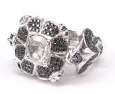 Heated Black Diamond Statement RingVendor: FlowerBold and distinctive, this designer ring features a rose-cut white diamond at its center, radiating a subtle shimmer with natural character and depth. The diamond is encased in a sculptural setting resembling a shield or floral form, completely pavé-set with hundreds of heated black...