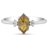 Salt & Pepper Diamond RingVendor: HexagonDescription This striking ring showcases a rare pentagon-cut green diamond at the center, set in lustrous 18K gold. Its raw beauty and natural character are perfectly complemented by two uniquely shaped white diamonds flanking either side. The contrast between the earthy green hue and...