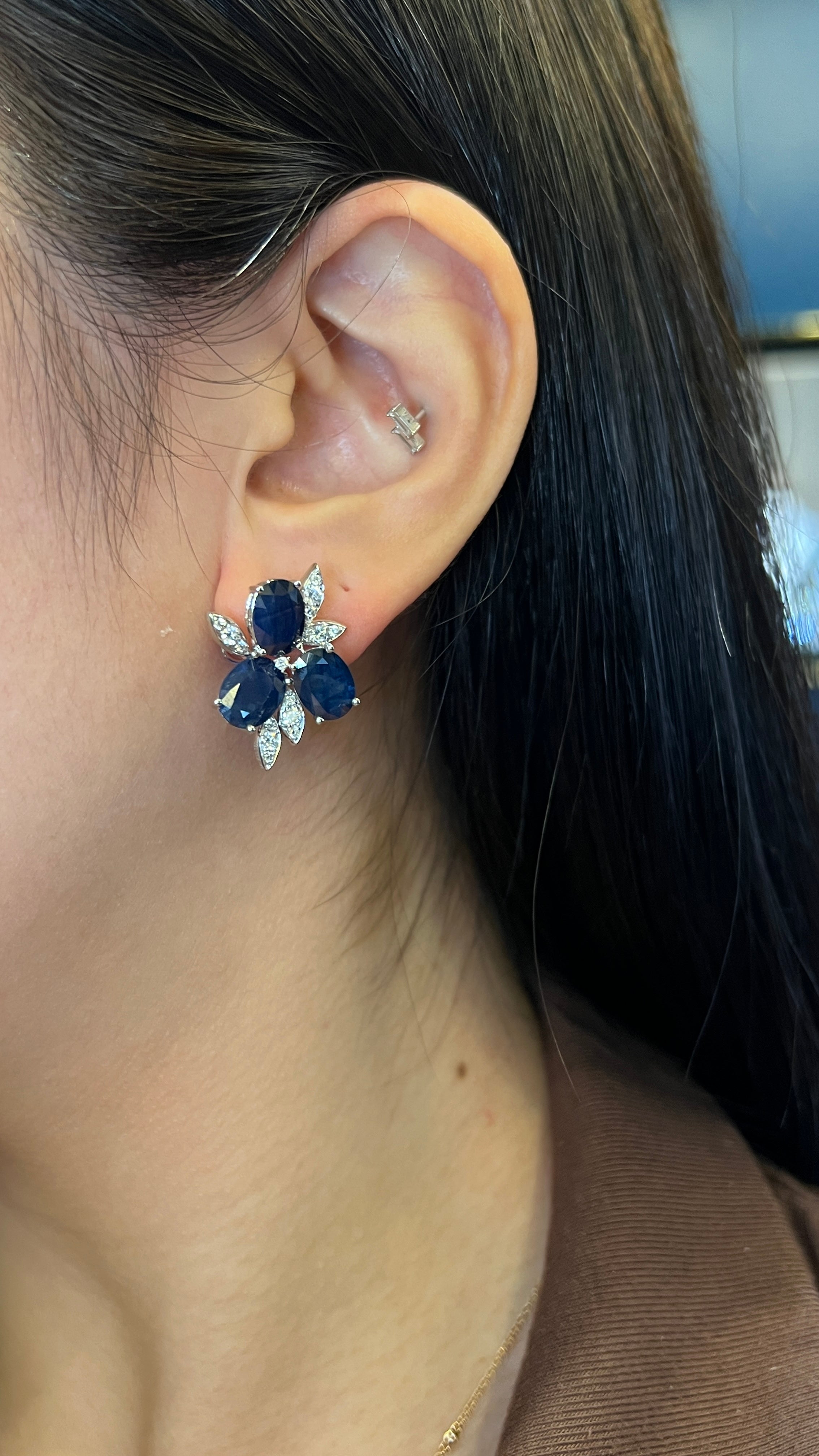 These earrings feature stunning oval blue sapphires that captivate with their rich, deep color and impressive size. Accentuated by sparkling round white diamonds, they create a perfect harmony of vivid color and timeless brilliance.