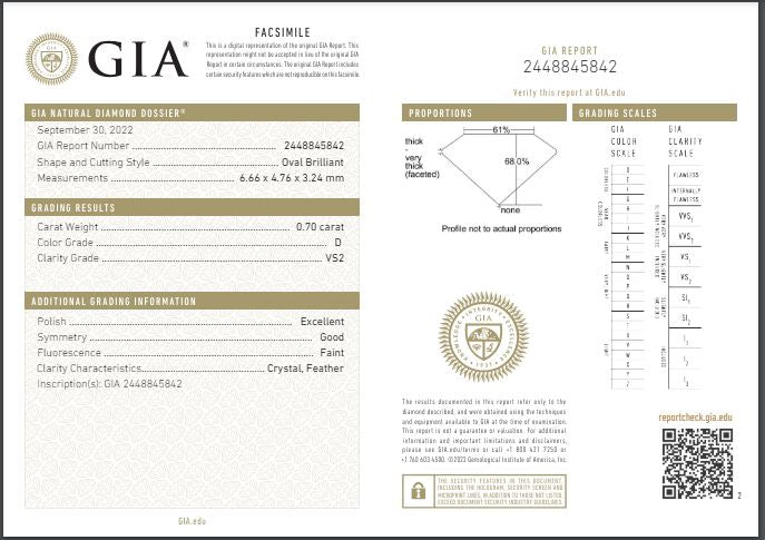 D color diamonds sit at the very top of the color scale, valued for their exceptional purity and icy-white appearance? Free from visible color, they represent the highest standard in natural diamonds. ThisNatural D Color Diamond, weighing 0.70 carats, is beautifully cut in an oval shape, enhancing its brightness while offering an elegant, elongated silhouette. For collectors, it is a timeless choice prized for its top-tier color and classic appeal. For jewelry designers, the oval cut makes this diamond perfect for refined rings, pendants, or minimalist designs where brilliance, balance, and enduring elegance take center stage.