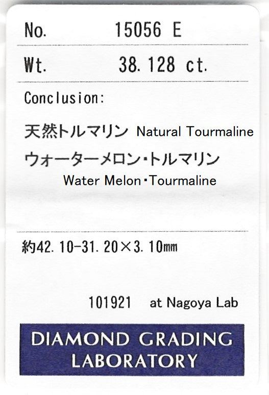 A 38.128-carat natural Watermelon Tourmaline slice displaying vivid pink and green zones that capture the essence of the fruit it’s named after. With its striking natural pattern and translucent glow, this gem is perfect as a collector’s centerpiece or transformed into an eye-catching piece of jewelry, a true celebration of nature’s artistry.