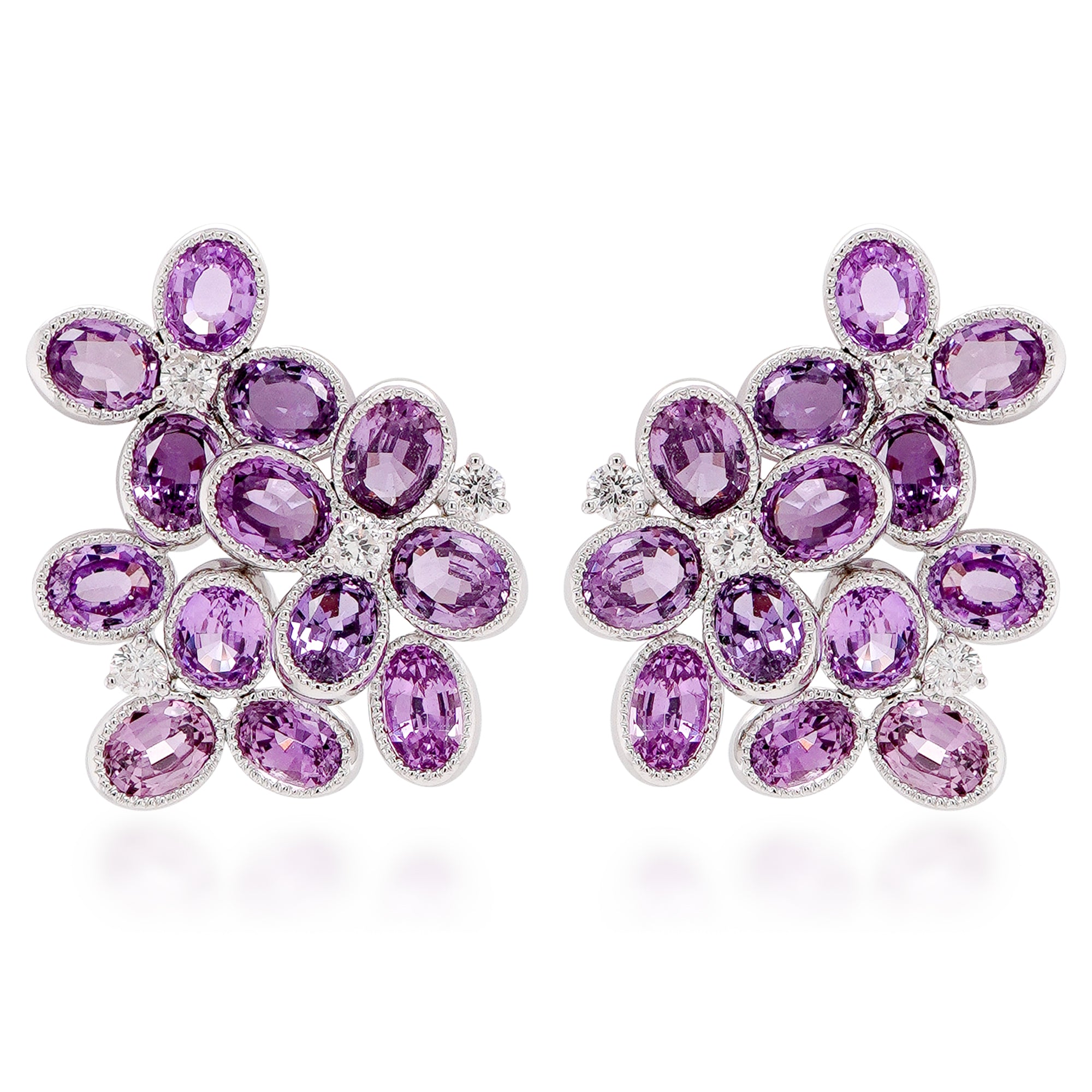 A pop of regal purple, a hint of sparkle, and a whole lot of elegance—these Purple Sapphire Earrings are crafted in 18K white gold to bring instant sophistication to any look. Their rich hue stands out beautifully without being loud, making them the perfect pair for both day and evening wear.